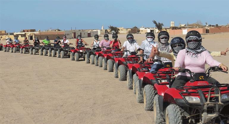Experience the silence of the eastern Sahara Desert on a 3-hour quad bike safari. Explore the mysteries of the traditional Bedouins at a desert village.